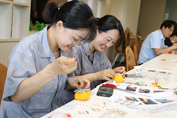 萋萋苦艾納香囊,傳承千年未泯香。我國(guó)自古就有端午佩戴香囊的傳統(tǒng),清香的艾葉有避邪驅(qū)瘟、醒腦提神的功效,也有“招百福”的美好寓意。員工們自己動(dòng)手縫制柿子形狀的香囊,象征“柿柿如意”,大家全神貫注,穿線、縫制、收口、定型,一個(gè)個(gè)可愛(ài)的小柿子就在手中誕生了。