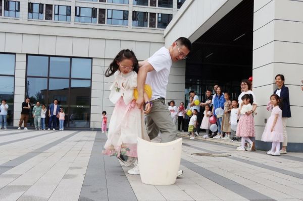 接著,在活動主持人的組織下,小朋友們進行了兩個互動小游戲。大家跟隨著動感的音樂傳遞手中的玩偶,當主持人喊“停”時,拿到玩偶的“幸運兒”需要介紹自己并表演一個節目。小朋友們都十分自信地亮出了“看家本領”,唱歌、跳舞、詩朗誦等等才藝信手拈來,獲得全場一片掌聲。第二個小游戲叫作“合力運球”,員工與孩子背靠背在規定時間內將3個氣球運送到指定地點,既是對親子默契的考驗,更是速度與智慧的較量。最終決出速度最快的前三組家庭,獲得一份小禮品。