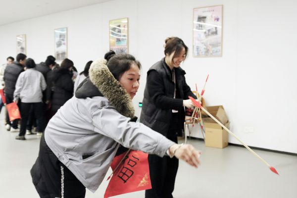 與此同時(shí),寫福字、夾“湯圓”、投壺項(xiàng)目也在如火如荼地進(jìn)行。“寫福字、沾福氣、納百?!?,祈愿福運(yùn)當(dāng)頭、萬事順?biāo)欤煌秹刈鳛橐豁?xiàng)傳統(tǒng)的娛樂活動(dòng),具有送祝福的寓意,體現(xiàn)了人們對(duì)美好生活的向往;夾“湯圓”則是在規(guī)定時(shí)間內(nèi)將“湯圓”夾入碗中,象征幸福團(tuán)圓。職工們體驗(yàn)完成四個(gè)項(xiàng)目,紛紛到禮品兌換處挑選自己心儀的小禮品,大家其樂融融、盡興而歸。