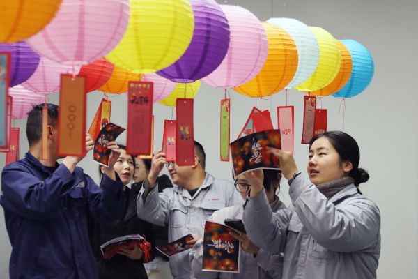 活動(dòng)現(xiàn)場,喜慶的燈籠烘托出濃濃的節(jié)日氛圍,一條條趣味燈謎掛滿室內(nèi),既有通俗易懂的猜字謎,也有較為靈活的腦筋急轉(zhuǎn)彎。職工們仔細(xì)打量著謎面,邊思考解謎、邊互相討論,現(xiàn)場歡笑聲不斷。