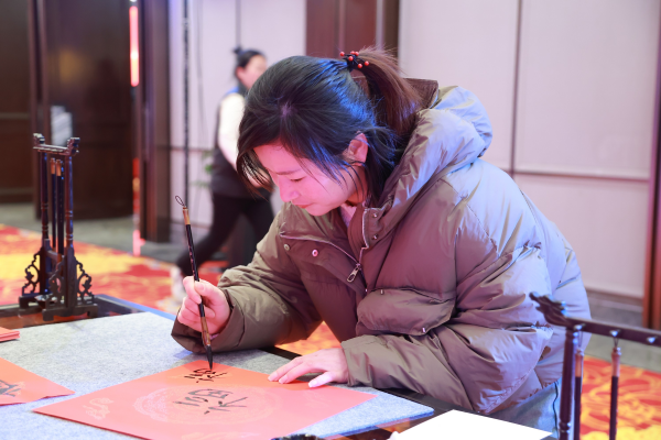 晚上,福斯特“崢嶸歷程三十載,同心同德創(chuàng)未來”三十周年慶典正式拉開帷幕。員工在場外互動區(qū)域集章打卡,參與寫福字、投壺、制作明信片等小游戲,玩得不亦樂乎,共同分享喜悅與歡樂。