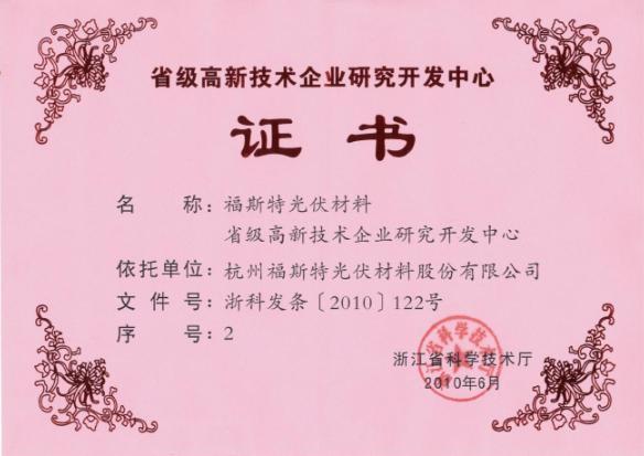 福斯特獲發(fā)省級(jí)高新技術(shù)企業(yè)研究開(kāi)發(fā)中心證書
