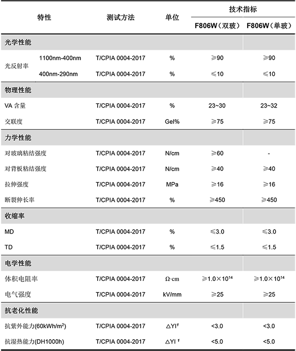 F·RST F806W 白色EVA膠膜具有下列主要特性: