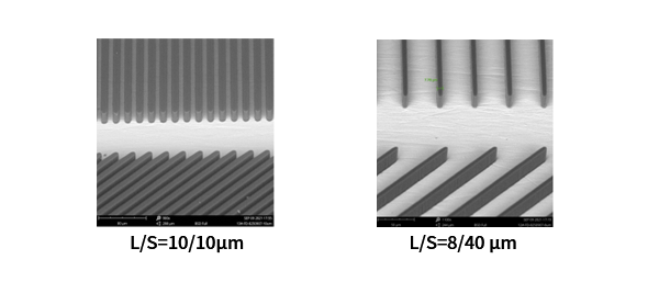 FD-800系列是為BGA、CSP等半導(dǎo)體封裝基板開發(fā)的LDI干膜,具有高感度、高解析、底部殘足小、電鍍污染性好、干膜側(cè)壁形狀良好等各種特點(diǎn),適用于微細(xì)線路蝕刻和半加成法(mSAP)工藝。
