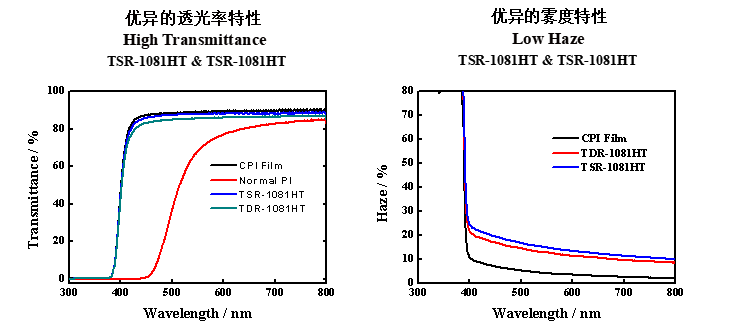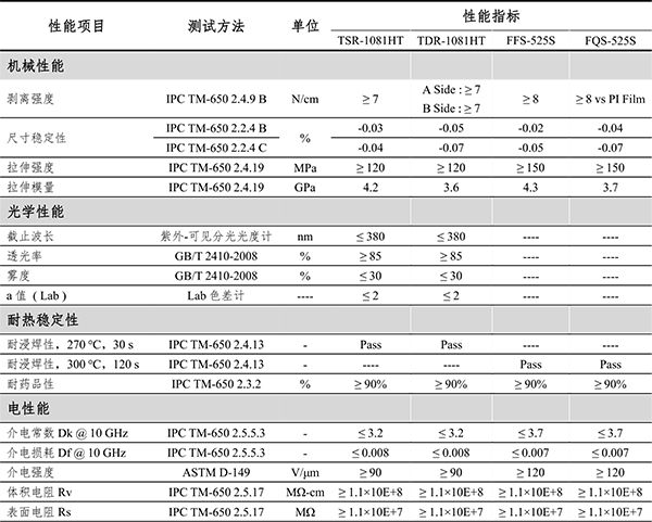 福斯特也開發(fā)了無色透明單/雙面板、復合膜和補強板等特殊基材。采用自主開發(fā)的無色透明聚酰亞胺,經(jīng)過特殊工藝路線生產得到。無色透明單/雙面板產品具有高剝離強度,高透光率和低霧度,良好的耐浸焊性,優(yōu)異的耐候性,可用于戶外顯示、戶外OLED屏等。復合膜和補強板具有高剝離強度,高平整性,高耐熱性,可用于制造高性能單面板和多層板。